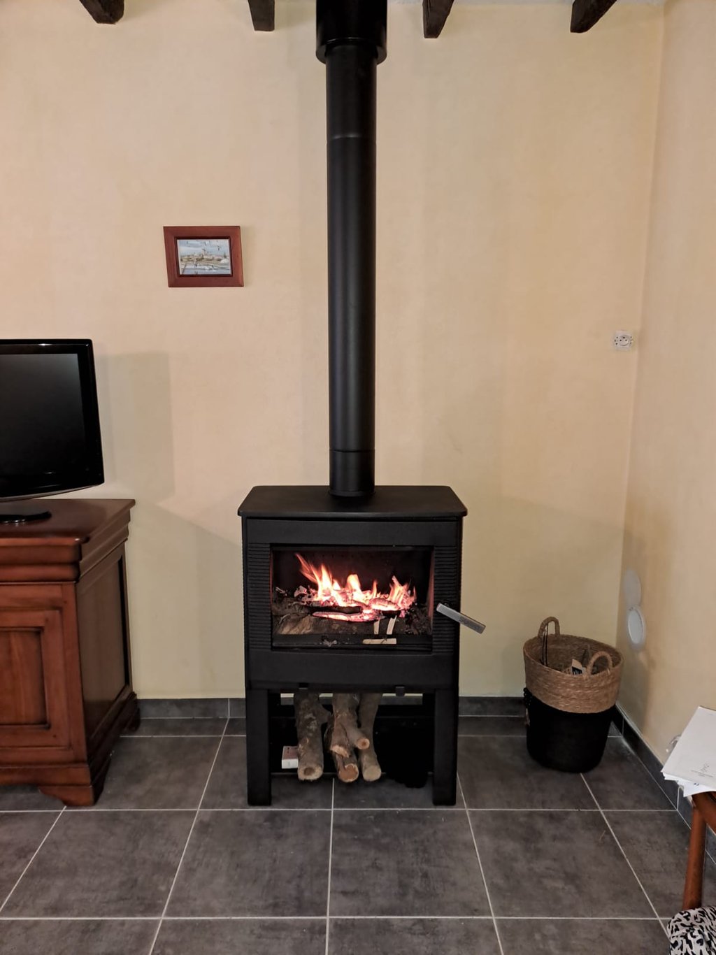 L’installation complète (conduit de fumée, raccordements, ventilation),